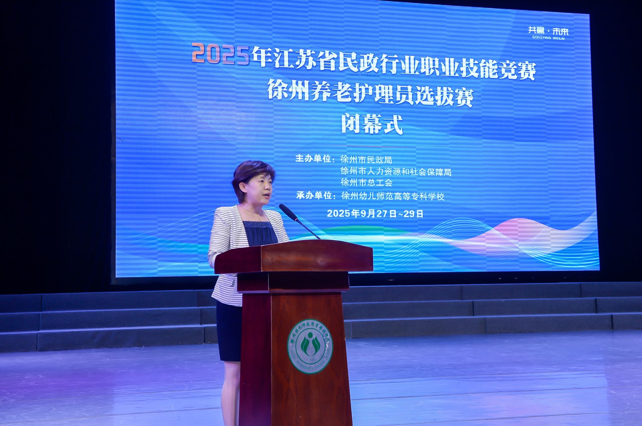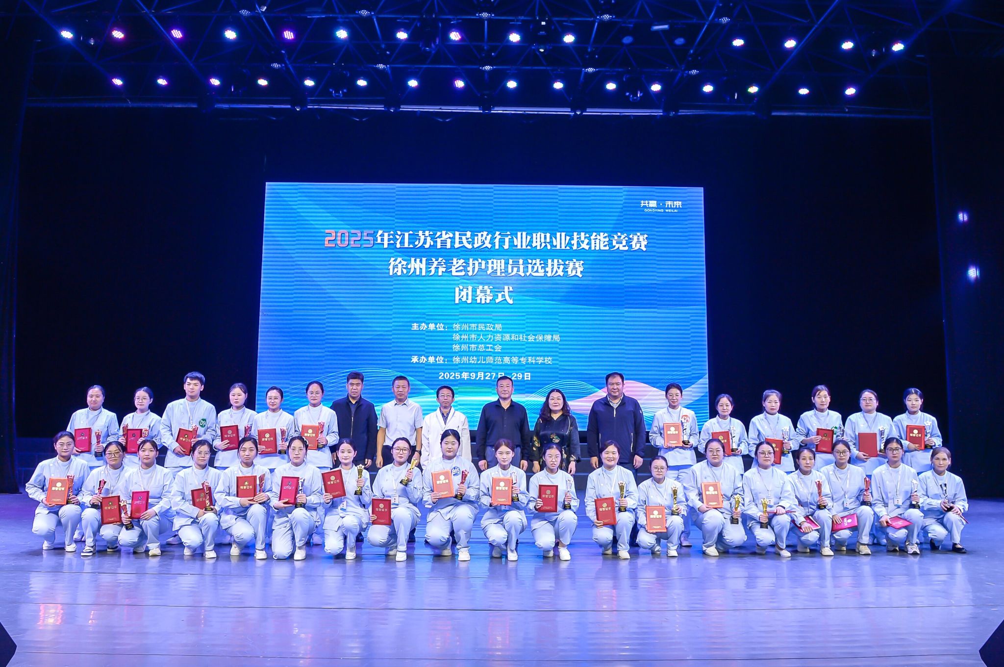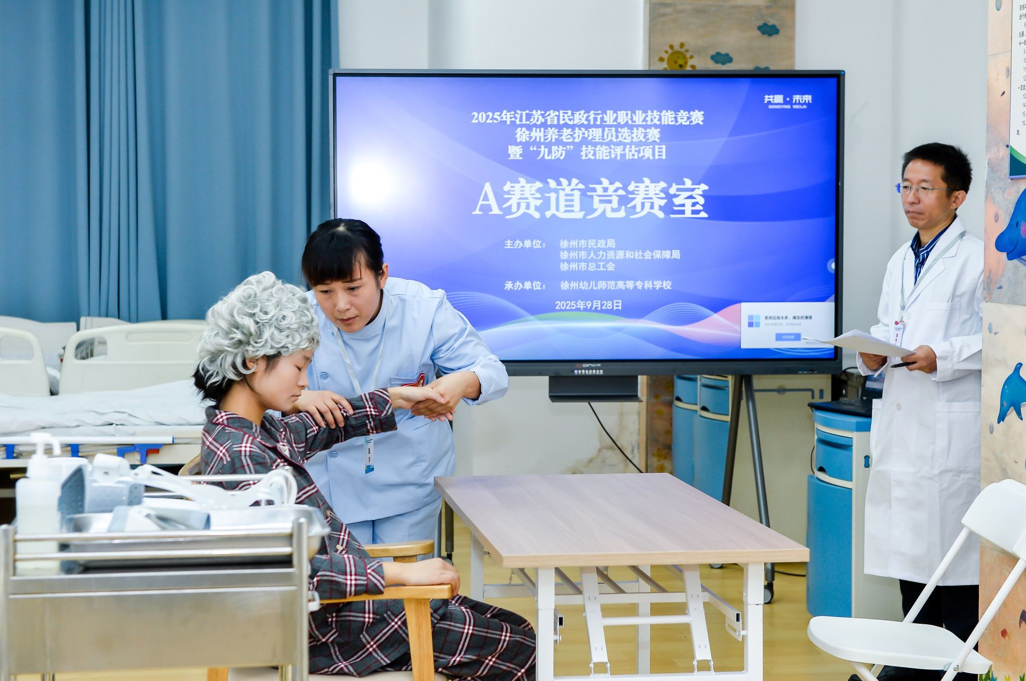 为深入贯彻落实积极应对人口老龄化国家战略,加强养老服务人才队伍建设,提升养老护理员专业能力,9月27日至28日,由徐州市民政局、徐州市人力资源和社会保障局和徐州市总工会主办,徐州幼儿师范高等专科学校承办的2025年江苏省民政行业职业技能竞赛徐州养老护理员选拔赛成功举办。