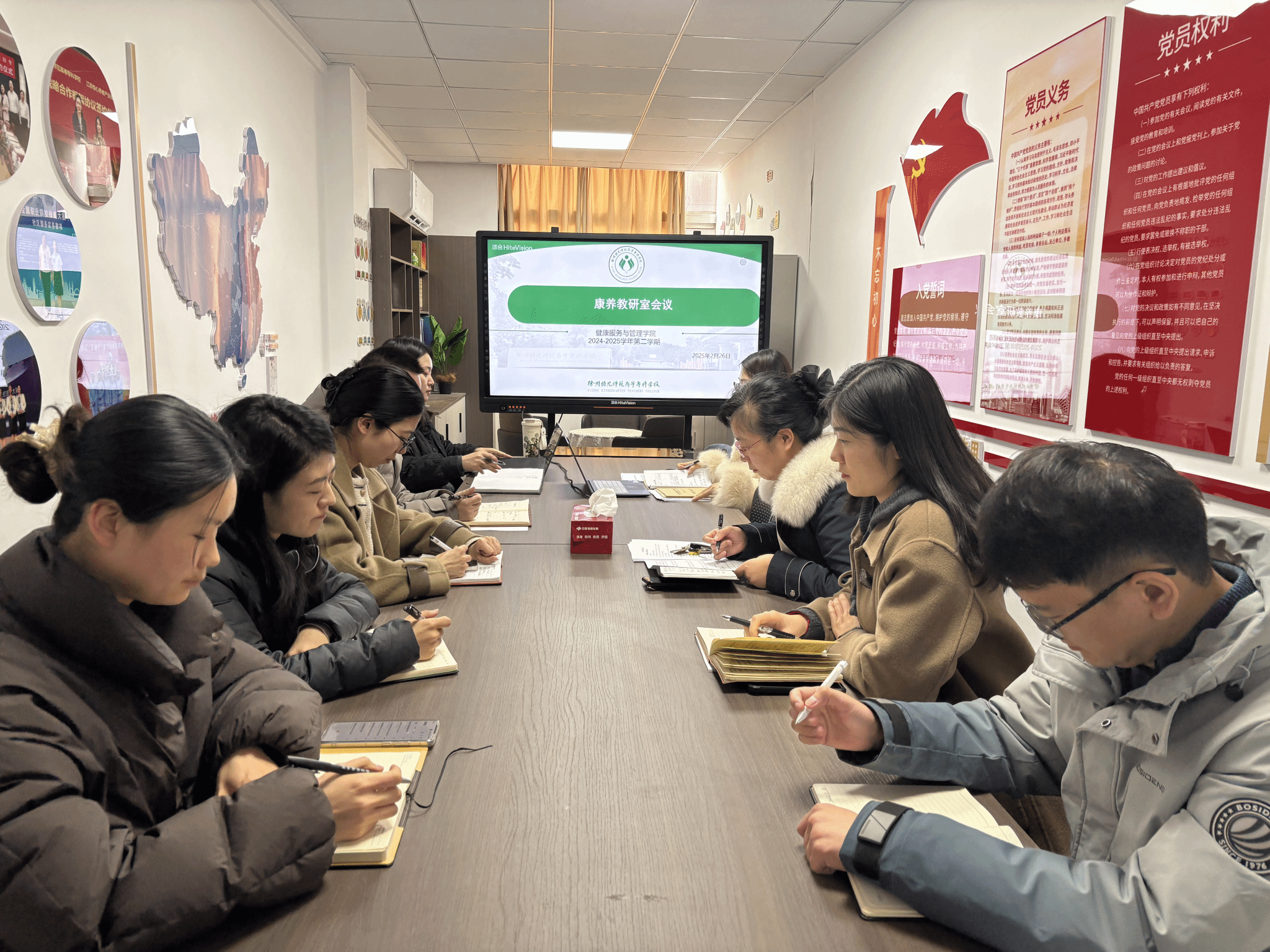 2月26日下午,我院康养教研室在洞山崇师楼308会议室开展集体教研活动,此次会议由教研室主任黄凯萍主持,副院长王晓斐、院长助理刘倩以及康养教研室全体教师参会。