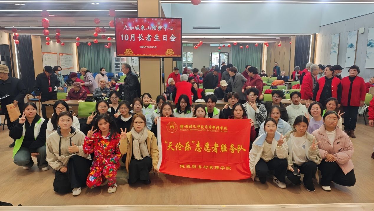 岁岁重阳,敬老情长。为深入弘扬中华民族尊老、敬老、爱老的传统美德,切实履行青年志愿服务的社会责任,徐州幼儿师范高等专科学校健康服务与管理学院“天伦乐”志愿者服务队再度启程,走进徐州市泉山九如城颐养中心,开展以“情暖重阳,爱满夕阳”为主题的志愿服务活动,为这里的长者们送去满满的祝福与温暖。